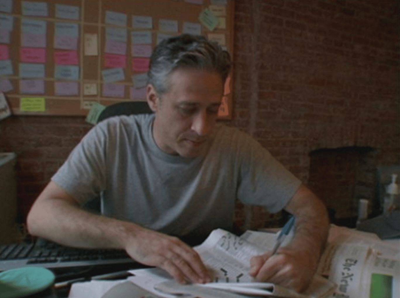 Jon Stewart löser kordord på sitt kontor