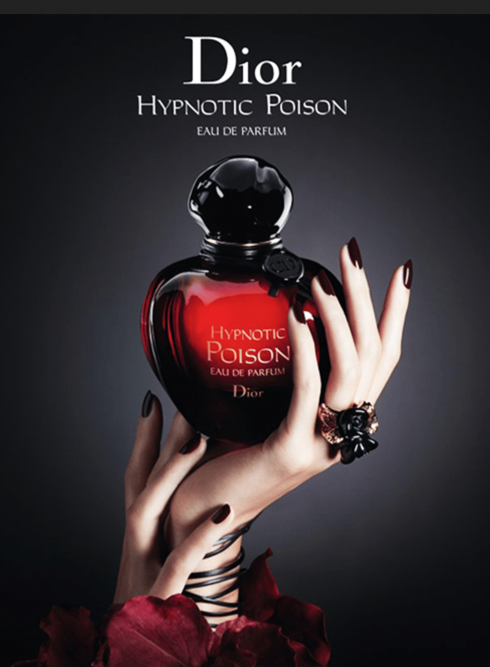 Annan mörk historia: Katarina av Medici - från den mäktiga Florensfamiljen och frankrikes regent under FEM tillfällen (!) i sin makes frånvaro, hade givetvis en privat parfymör. Varför skulle hon inte ha det? Rene lé Florentin hette han och ryktet säger att han gav henne inte bara parfym utan handskar med gift (parfymindustrin startade, som bekant, parallellt med garvningsindustrin. Eftersom nygarvat läder luktar så hemskt började man doftsätta produkterna, som handskar, med doftoljor). Tydligen ska Katarina ha mördat minst fem rivaler med just fögiftade handskar. Detta har aldrig bevisats men storyn var för smaskig för att inte spridas - och leva vidare. Mord medelst parfym! Vad betyder detta för oss? Ingenting, annat är att det skulle gå att hävda att all lyx har en svart, mordisk, farlig och tragisk bakgrund. På sanskrit är "parfym" och "röd arsenik" samma ord. Men också att skönhet och död alltid gått sida vid sida. Att gå över lik för skönhet, att sälja sin själ till djävulen för ungdom. Något som alltså marknadsföringen av parfym av idag fortsätter att spinna på. DiorHypnotic Poison innehåller doftnoten bittermandel och bittermandel innehåller amygdalin som har samma aromatiska ingrediens/doftmolekyl som i cyanid, enligt Luca Turins The secret of Scent. Nu var det ett par årtionden sedan Diors Poison låg som ett doftmoln över parfymdiskarna men idag går det att gå in på vilket varuhus/Lyko/Sephora/Kicks som helst för att se någon parfym med blinking till bermudatriangeln gift, död och glamour. Någon som känner igen den här parfymen till exempel?